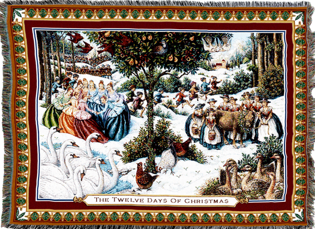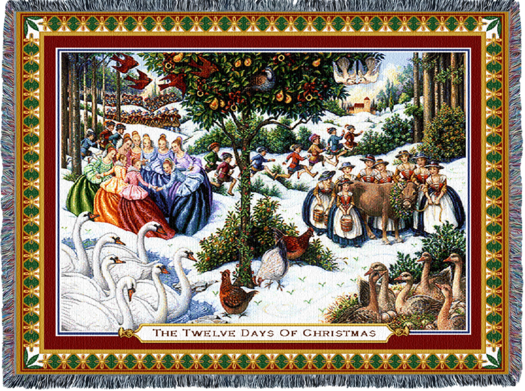 Twelve Days Of Christmas Woven Cotton Throw Blanket by Lynn Bywaters©|2 Sizes